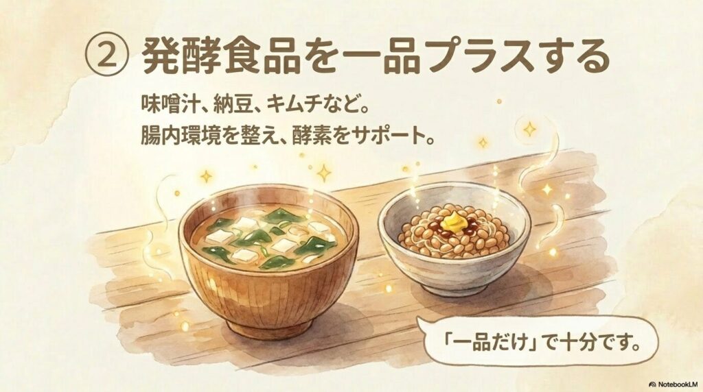 飲んだ翌日の朝ごはんに、いつもの食事に一品だけプラスしてみてください。「完璧な食事にしなきゃ」と思わなくていいんです。納豆ごはんだけでも、お味噌汁だけでも、それで十分です☺️