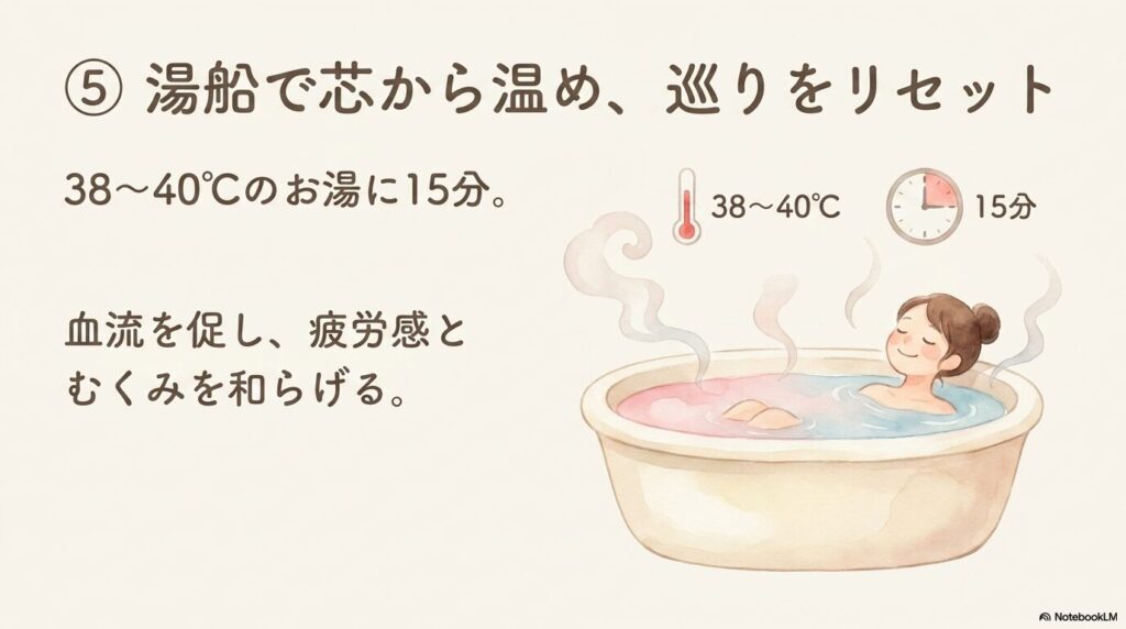 38〜40℃のお湯にゆっくり15分。これだけでも、体の感覚はかなり変わります🌸