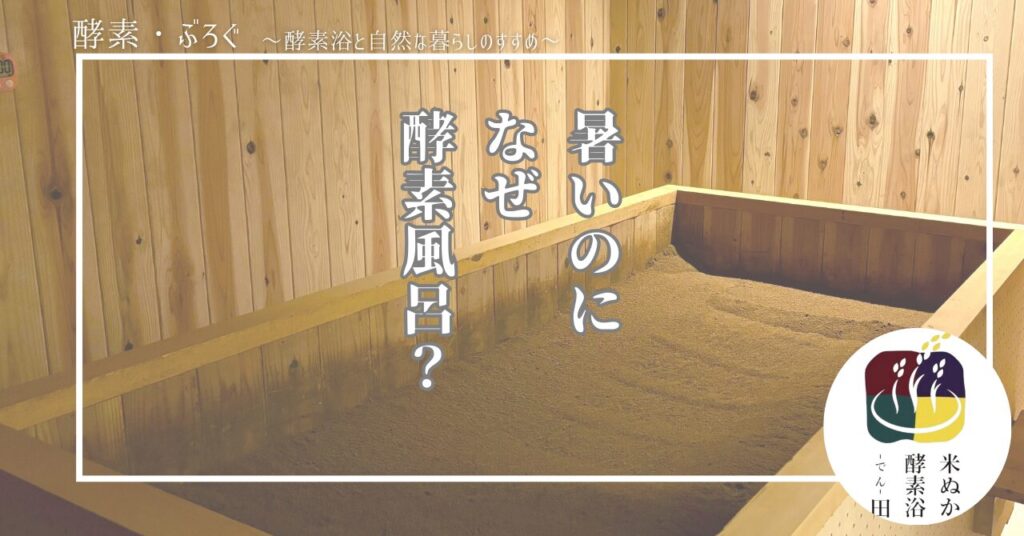 デンちゃん こんにちは!米ぬか酵素浴田(でん)米ぬか管理担当のデンちゃん(夫)です! 「えっ、こんな暑いのに酵素風呂?」そう思われる方も多いかもしれません。でも実は…夏こそ酵素風呂が大切な季節。冷たい飲み物・クーラー・シャワー生活…そんな習... -