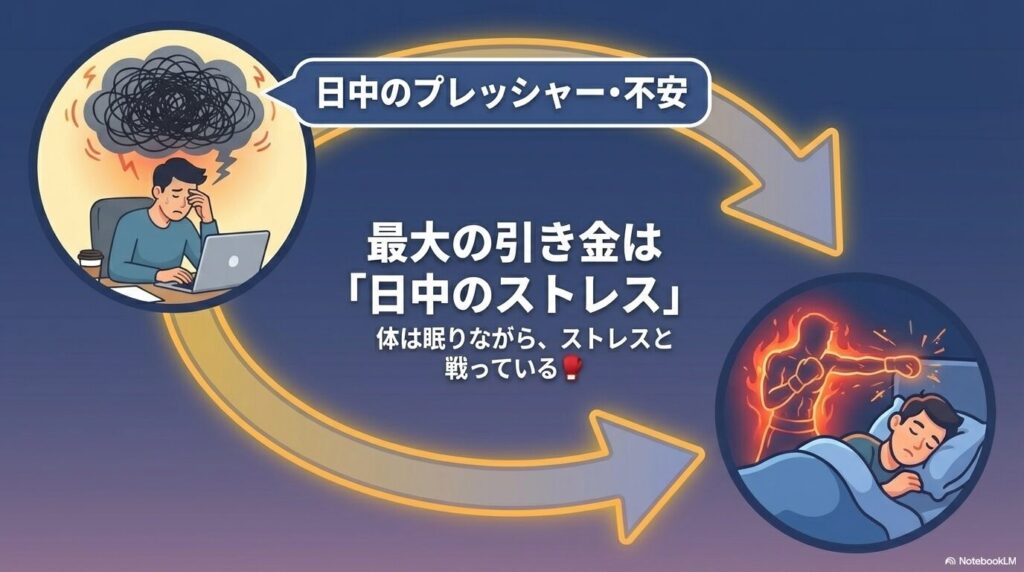 自分では「今日は特に嫌なことなかったな」と感じていても、体はちゃんとストレスを受け取って、こっそり夜に戦っていたりするんですよね。