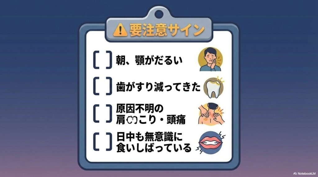 - 😬 日中も知らずに歯を食いしばっていることがある