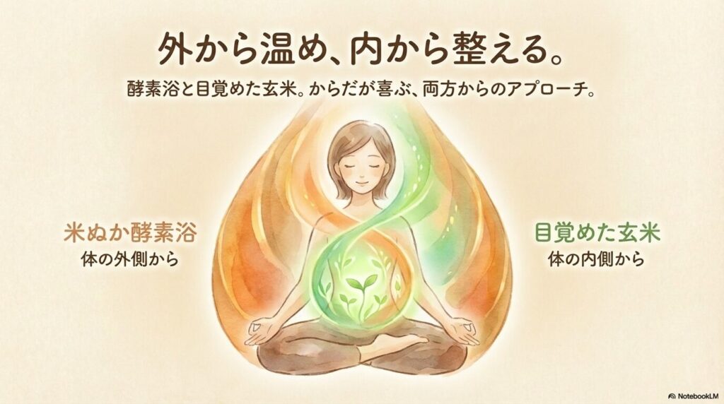 米ぬか酵素浴(酵素風呂)を営む私が日々感じているのは、「体は外からも内からも整えていくもの」ということです😊