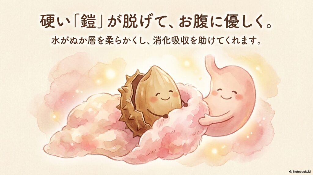 また、水に浸すことで玄米のぬか層がやわらかくなり、消化・吸収がしやすくなるというメリットもあります。「玄米は胃に重い」と感じていた方も、しっかり浸水してから炊くと食べやすくなる場合がありますよ!