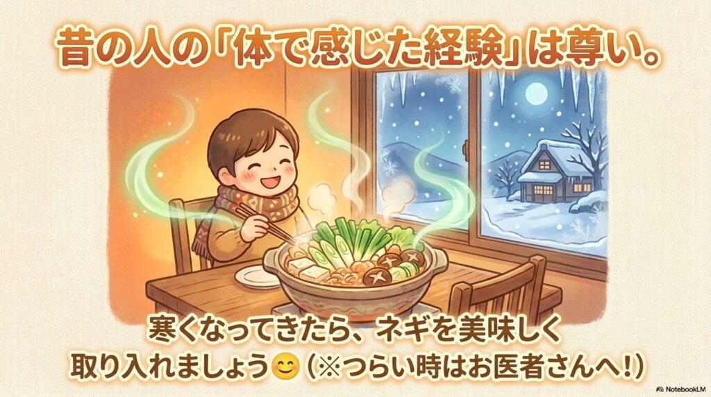 これ、実はただの迷信じゃなかったんです。ネギに含まれる「アリシン」という成分の働きを、昔の人は経験から知っていたんだと思うと、なんだか感動しませんか✨