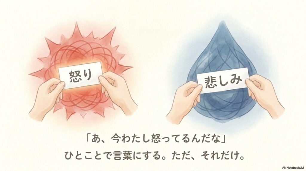 「今わたし、怒ってるんだな」「悲しいんだな」——それだけでいい。小さな言葉が、気持ちを少しだけ楽にしてくれるかもしれません😊